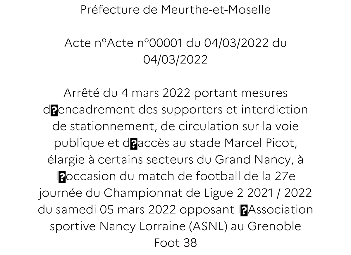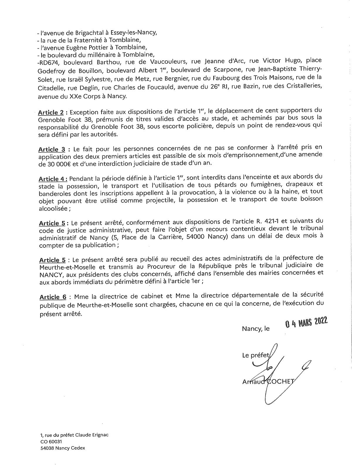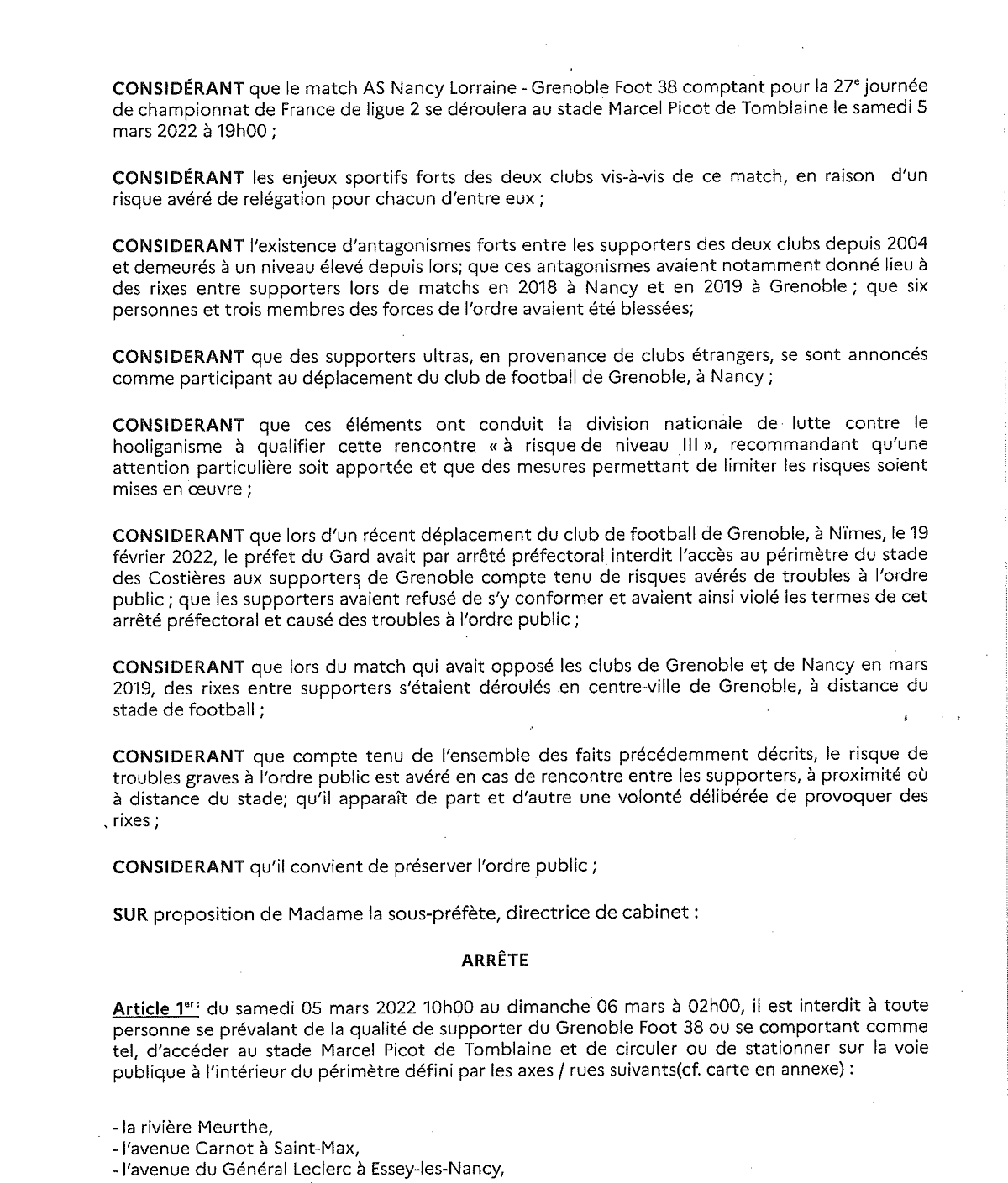 Accueil Uncategorized Encadrement des supporters du GF38 pour le déplacement à Nancy Uncategorized Encadrement des supporters du GF38 pour le déplacement à Nancy Par Redaction - 04/03/2022 FacebookXWhatsAppEmailTelegram Retrouvez ci-dessous l’arrêté de la préfecture de Meurthe-et-Moselle concernant l’encadrement des supporters du GF38 pour le déplacement à Nancy ce samedi 5 mars 2022. ARTICLES CONNEXESPLUS DE L'AUTEUR Comment les absences clés influencent les probabilités calculées ? Casino Slot7 : Bonus, Jeux et Paiements Passés au Crible pour les Joueurs Français Comment les transferts de mi-saison affectent les prédictions ? LAISSER UN COMMENTAIRE Annuler la réponse S'il vous plaît entrez votre commentaire! S'il vous plaît entrez votre nom ici Vous avez entré une adresse email incorrecte! Veuillez entrer votre adresse email ici Enregistrer mon nom, email et site web dans ce navigateur pour la prochaine fois que je commenterai.