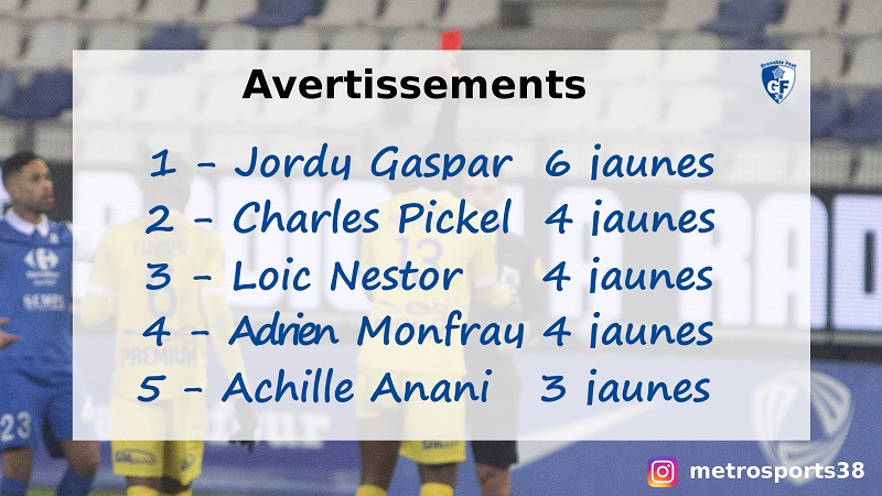 Deux joueurs du Grenoble Foot 38 ont récolté leur 3ème carton jaune de la saison lors de la défaite à Clermont : Jérôme Mombris et Achille Anani.