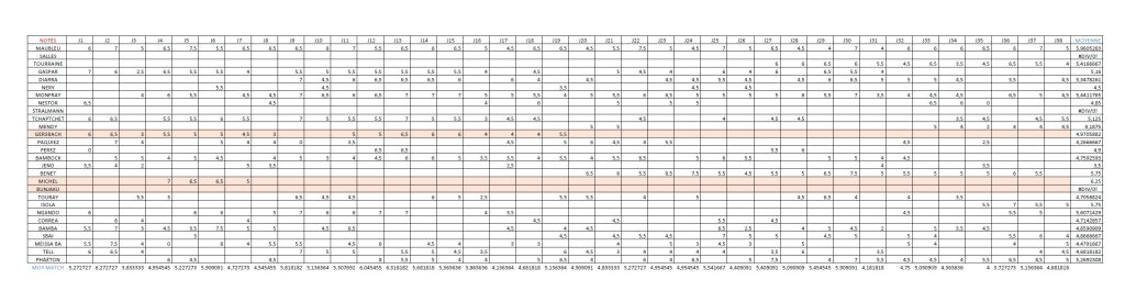 Tout au long de la saison, nous avons noté les joueurs du GF38 après les rencontres de Ligue 2, à conditions qu’ils aient joué au moins 45 minutes par match. Retrouvez ci-après les notes moyennes obtenues par tous les éléments grenoblois, avec le nombre de match pris en compte à chaque fois.