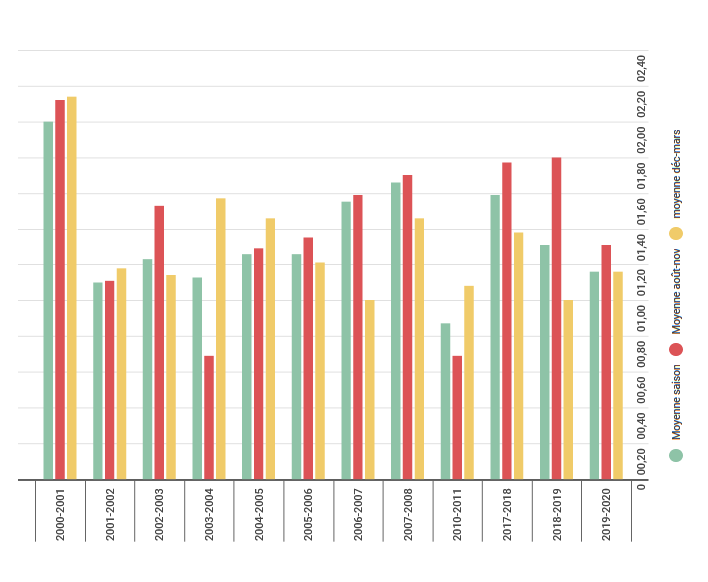 Ensuite que ce n’est pas une vérité absolue : sur 12 saisons étudiées, le bilan hivernal n’est ainsi inférieur qu’à 7 reprises au bilan estival.
