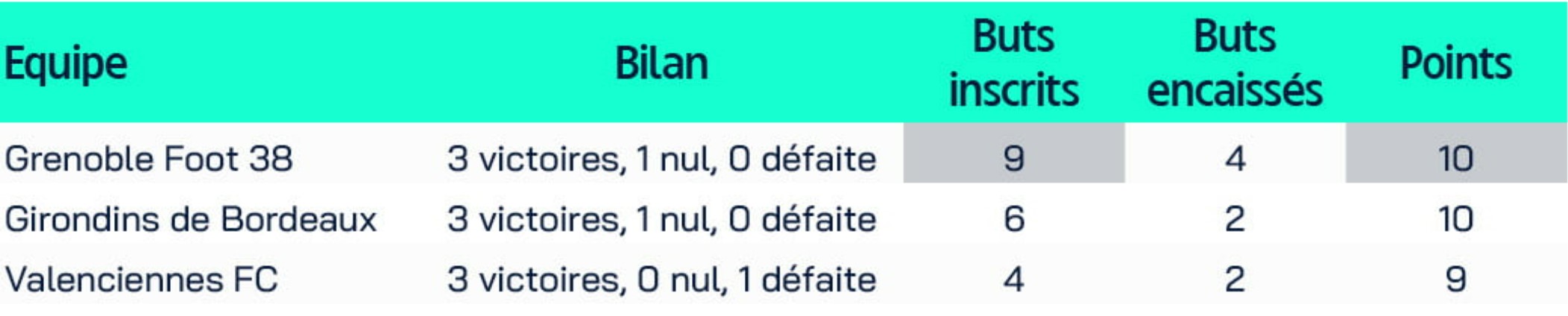 Sur cette série la Ligue rappelle ainsi que le club isérois n’a plus fait mieux dans la division depuis avril 1969, date où il avait signé un « 4 à la suite ». C’est en revanche plus fréquent que Grenoble parvient à signer trois succès de rang. Lors de la saison 2020-2021, l’équipe de Philippe Hinschberger y était ainsi parvenue à 2 reprises ou encore une fois lors de son retour en Ligue 2. Les coéquipiers de Brice Maubleu savent donc ce qu’ils doivent faire pour marquer de leur empreinte l’histoire du club.