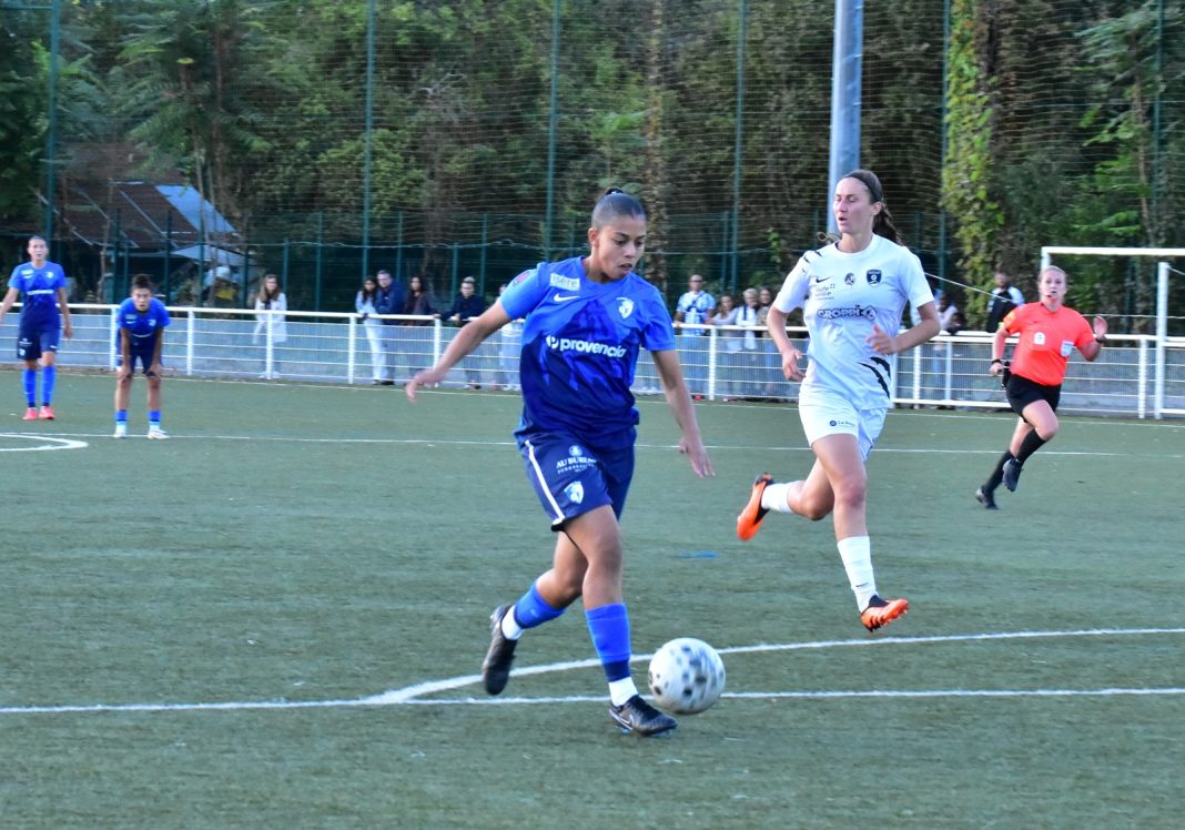 Les Grenobloises étaient venues chercher un résultat. Elles l’ont obtenu avec la manière. Dès l’entame, elles faisaient un pressing très haut qui déstabilisait les Ruthénoises. Le travail au milieu de terrain donnait quelques occasions aux visiteuses. Les Iséroises obtenaient un corner et Baga s’en chargeait. Elle envoyait un ballon rentrant dans la surface, provoquant un cafouillage. Le ballon arrivait dans les pieds de Domenjoud qui concluait (0-1, 18e). La pause arrivait avec cette petite avance pour Grenoble.