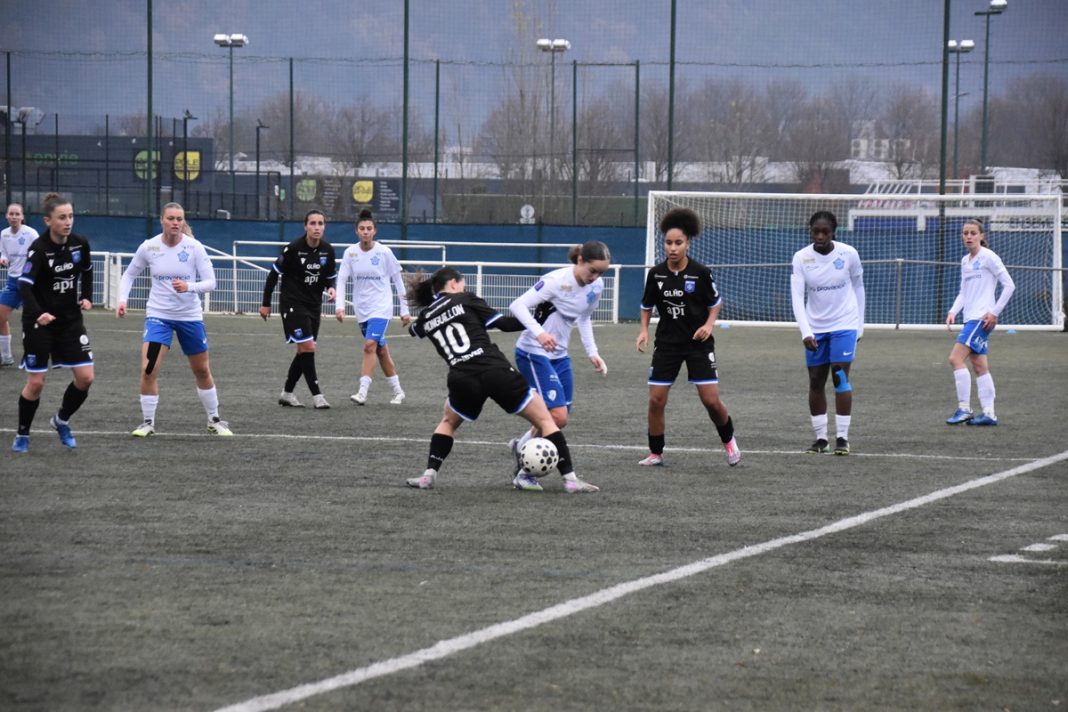 Le début de match montait très vite en intensité avec des Iséroises qui se rendaient maître du ballon. Sur une belle ouverture, Fabre, elle pour Sadiki pour l’ouverture du score (1-0, 7e) . La bonne domination des locales leur apportaient des occasions de doubler la mise. Mais la gardienne restait vigilante, à l’image de l’arrêt sur une frappe de Charbonnier (12e).